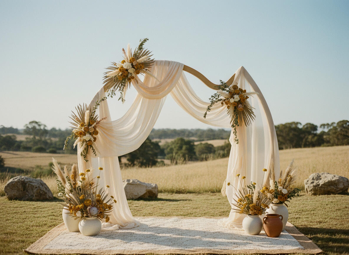 Ceremonia civil entre encinas y flores suaves.
